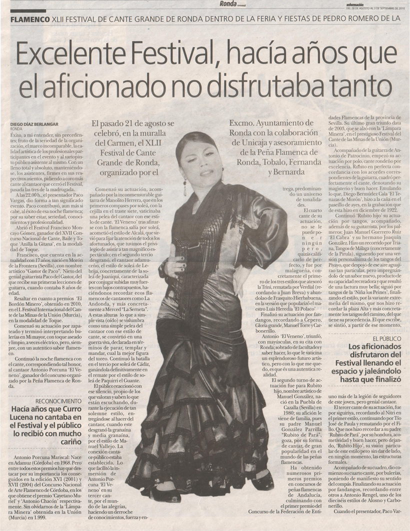 - 「RONDA SEMANAL」28 de agosto de 2010. Crítica por Juan Diego Berlangar