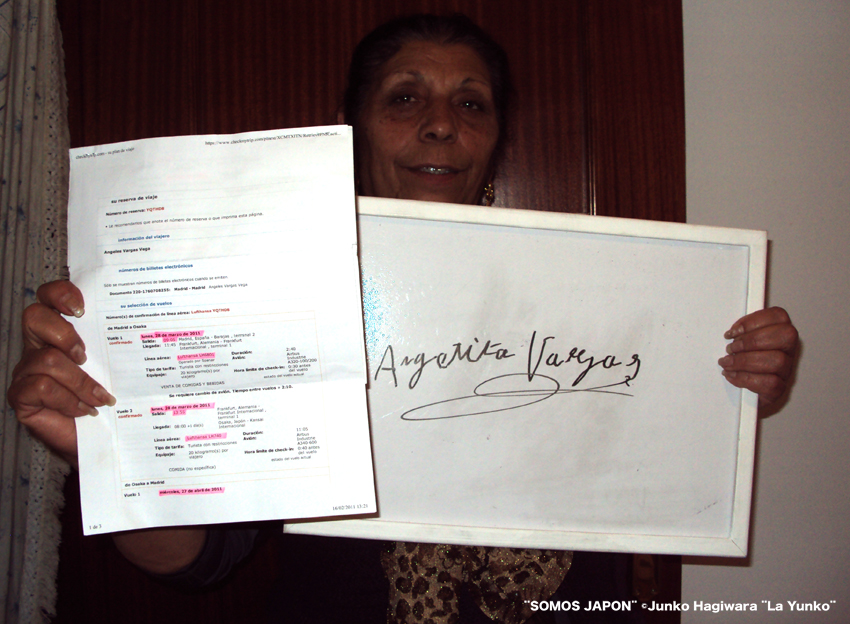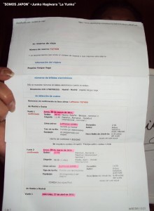Angelita Vargas se va a Osaka, Japón el día 28 de marzo,ella muestra su e-ticket para Japón y su firma.