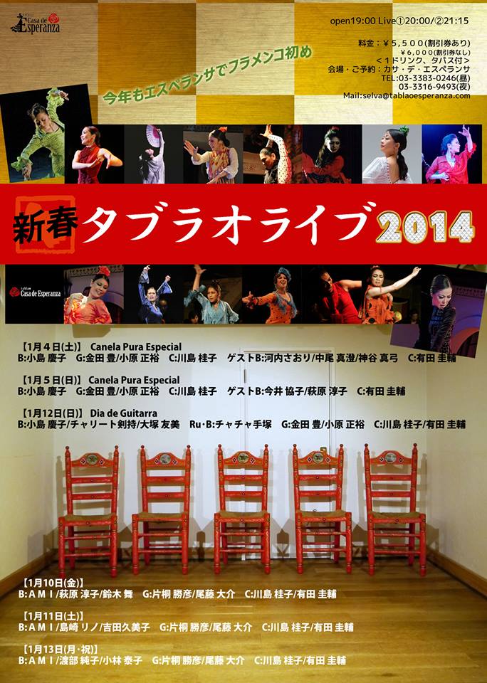 Anoche ¨La Yunko¨ actuó con el grupo japonés ¨Canela Pura¨ en un tablao que lleva 42 años en Tokio,¨Casa de Esperanza¨ . La actuación tuvo mucho éxito, así hemos empezado el 2014 con mucha alegría y mucho amor al flamenco.