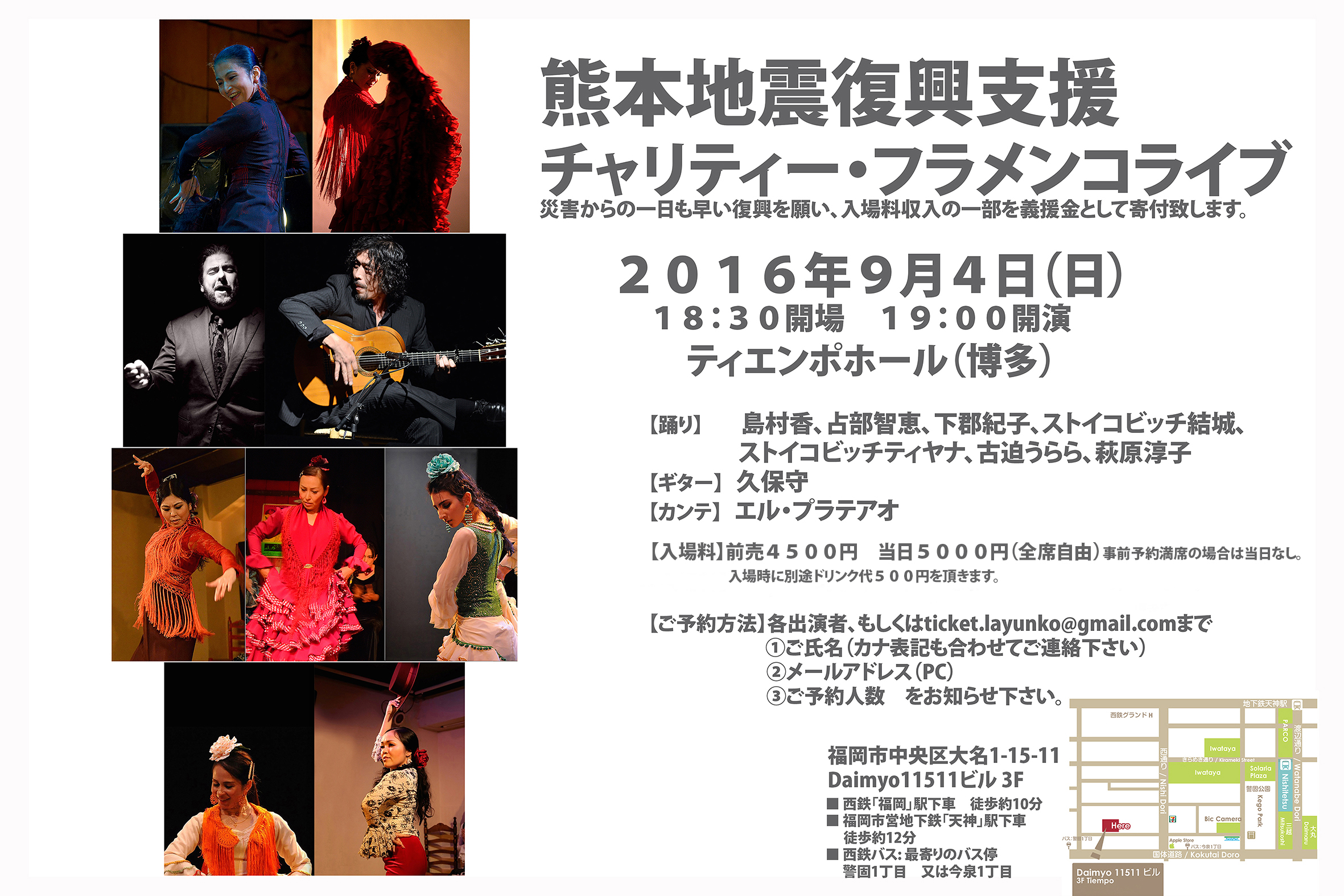 El día cuatro de septiembre actuamos en Fukuoka, gracias a la colaboración de muchos artistas hemos podido organizar una actuación benéfica para ayudar los víctimas del terremoto.