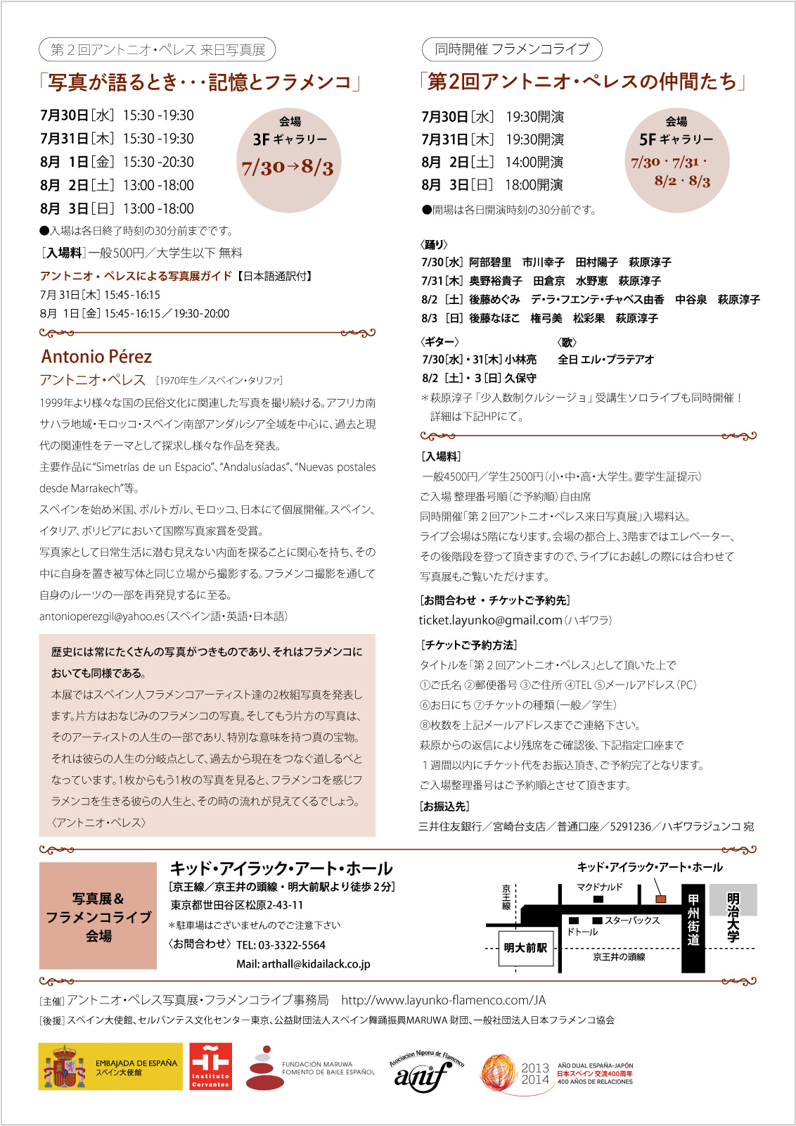 これまでに雑誌“パセオ・フラメンコ”さんやフリーペーパー“ファルーカ”さんに本人の写真が掲載され、たくさんの方から「なんかちょっと違う。そこがアーティスティック。」「アントニオの写真好き!」とお言葉を頂いております。ファンの皆様、ありがとうございます。今回の写真展でも存分にお楽しみ下さいませ。歴史的な秘蔵写真もありますので探してみて下さいね!