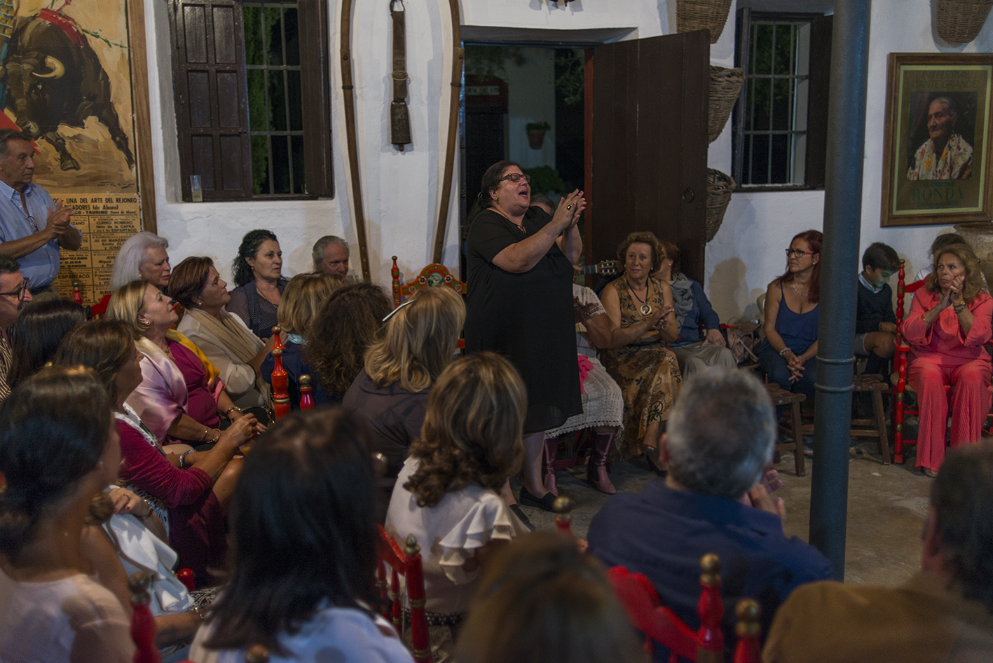 会場はヘレス郊外の土地にどーんと建っている別荘みたいな所で、とにかく雰囲気がステキ。中に入るだけでフラメンコが踊れてしまいそう。(気分だけなら誰でも踊れる。笑)たくさんのヘレスの人達が集まっていました。セビージャからは夫と私と私達の知り合いの3人だけだったかな?そのうち、アナ・マリア・ロペスと旦那さんのペドロ、そしてイネス・バカンもやってきました。うわー楽しみ!アナ・マリア・ロペスはヘレスでブレリアを教えていてもう30年以上にもなるベテランの先生。イネスはレブリーハの神々しい歌い手。どんなフィエスタになるんだろう!!!