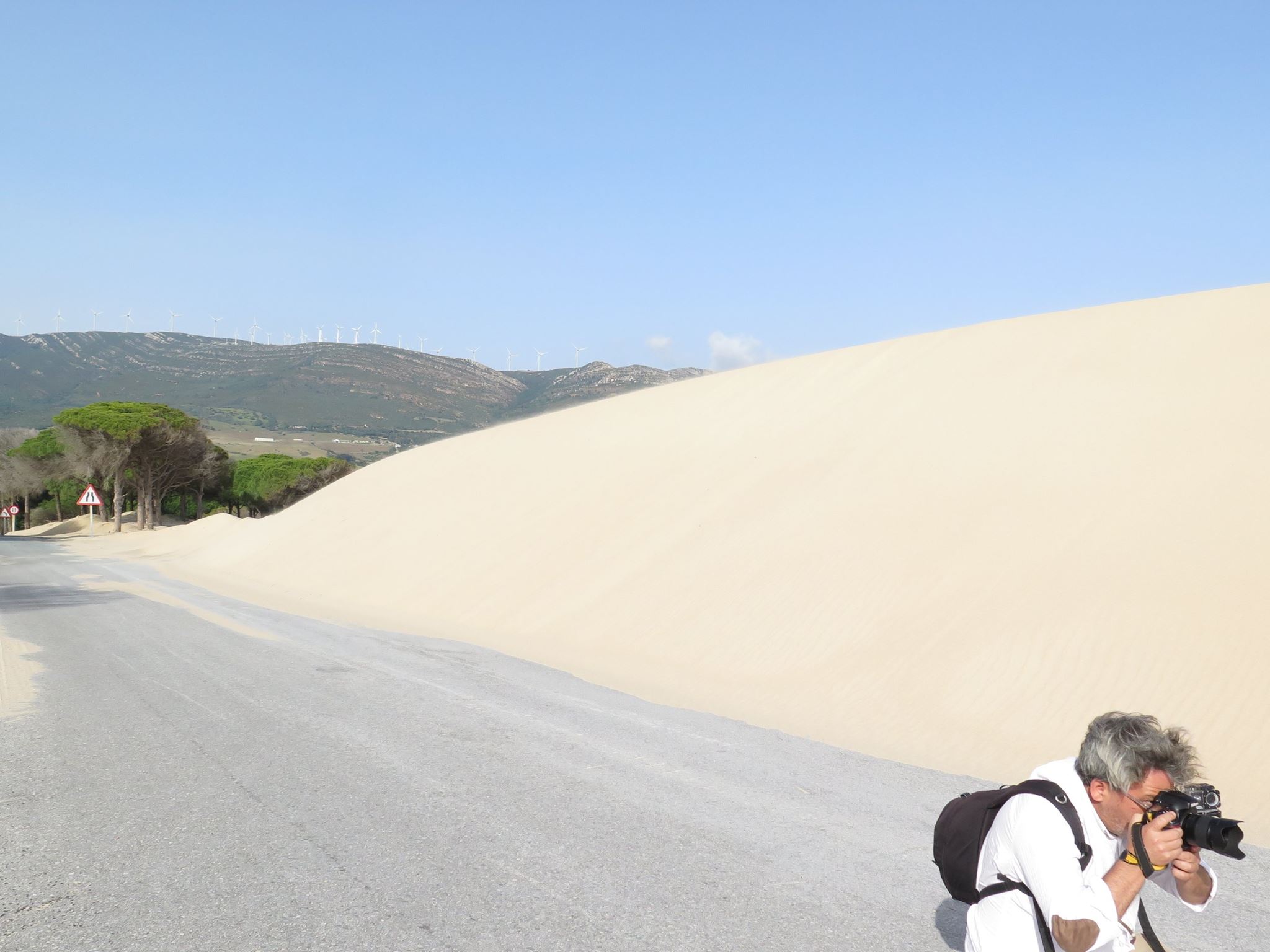 先週はタリファにいる義父母の所へ帰国前の挨拶に行ってきました。その義父母の家の近くのタリファの砂丘の写真をアップします。タリファはレバンテと呼ばれる非常に強い風が常時吹いている町で、その風のために砂丘の砂が道路を飲み込んでしまうのです。除雪車ならぬ「除砂車」が通っても、まるで砂が生きているよう・・・。