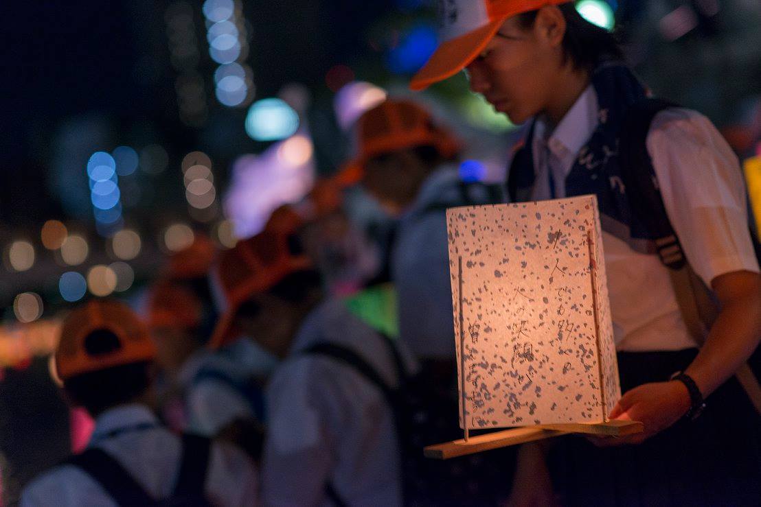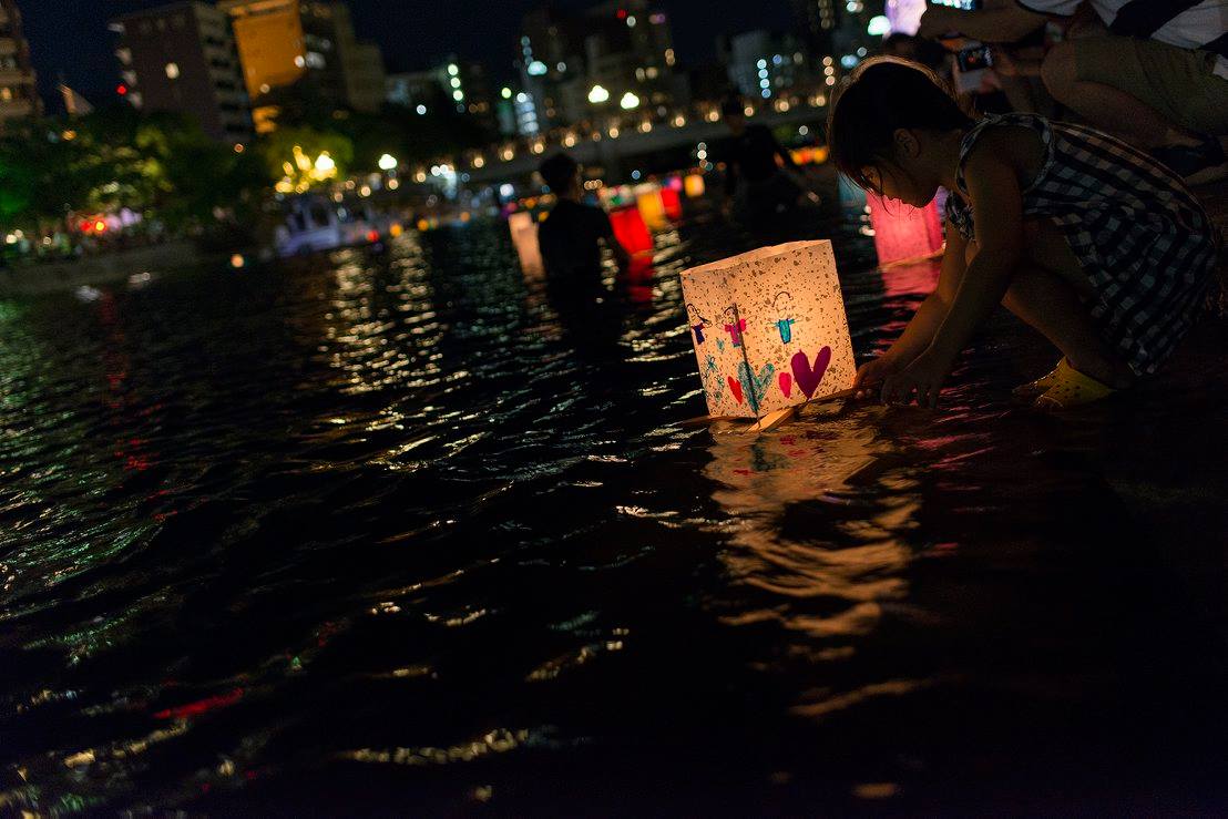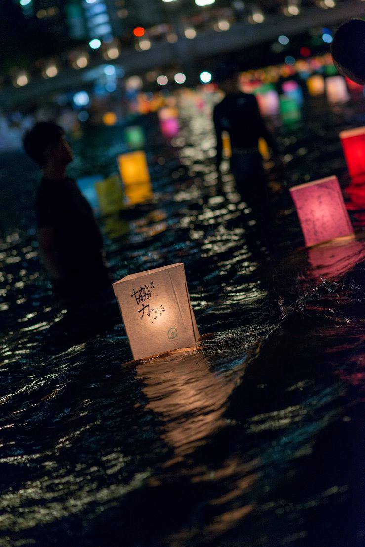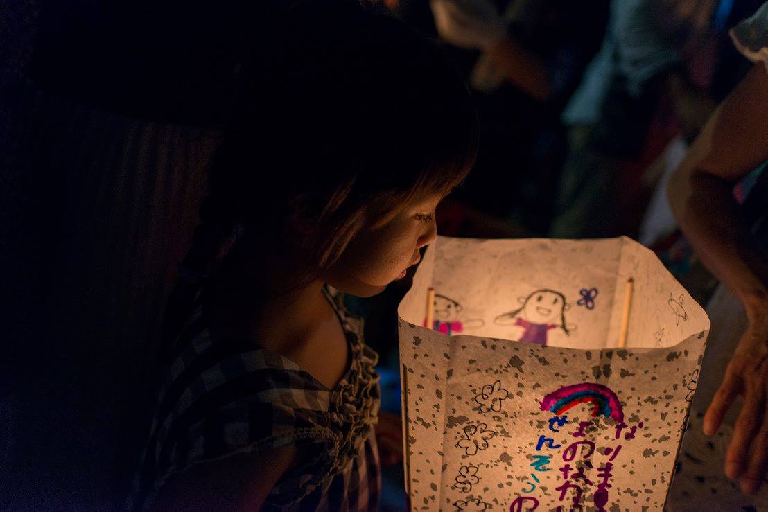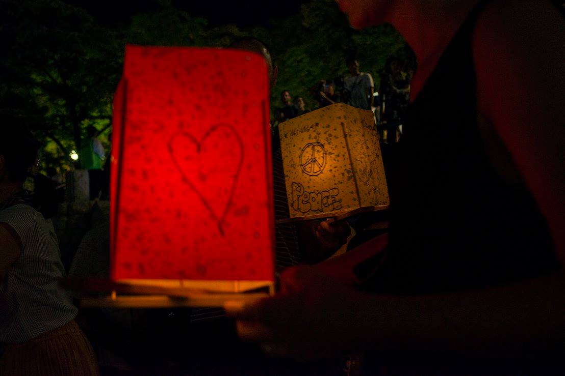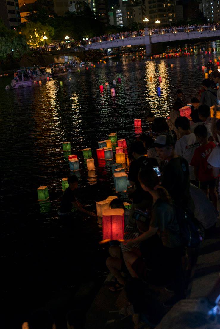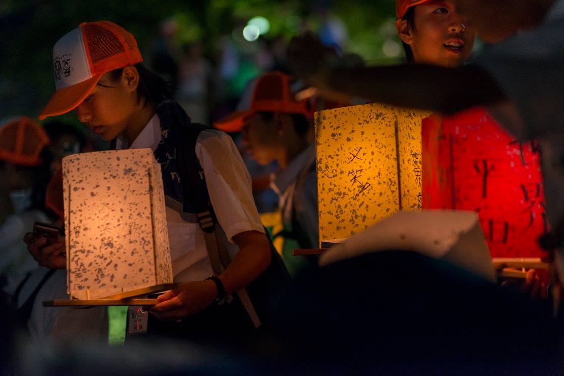 夜は灯篭流し。本当にたくさんの行列で私たちは時間内に灯篭流せないんじゃないかと思って、近くにいた方に灯篭を託したのですが、その方は「せっかく来たのだからどうぞ」と列に入れて下さいました。その方はガイドさんで、なんでも宇都宮市では毎年、市内25の中学校の代表各1人を記念式典に出席させているのだそう。もう一人の引率の方は「人生観が変わりますね」とおっしゃっていました。