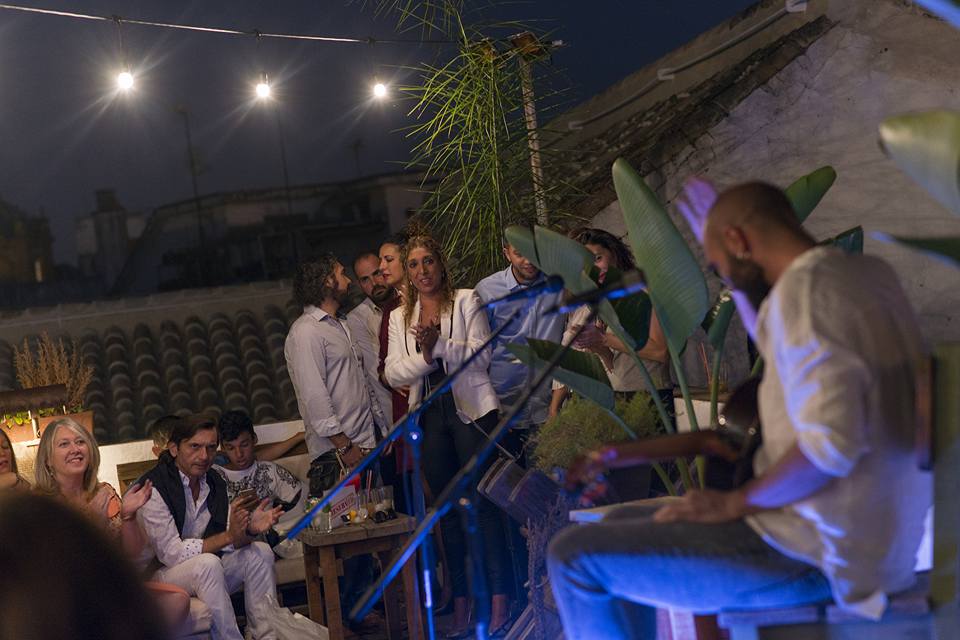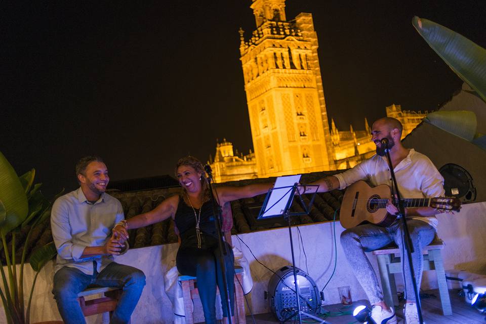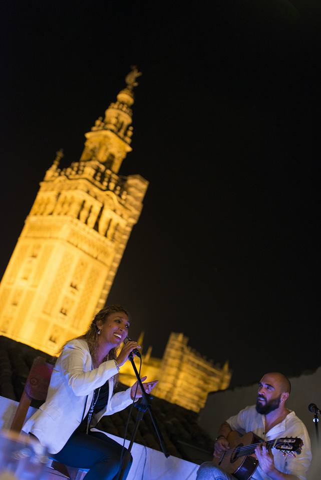 週末にはコンサートも無料で開催されています。どちらかというとポップス系の感じが多いようなのですが、時々フラメンコアーティストも出演するとのこと。日曜に、ダニ・ボニージャの弾き語りコンサートにエスペランサ・フェルナンデスが友情出演されるとのことで、行ってきました!