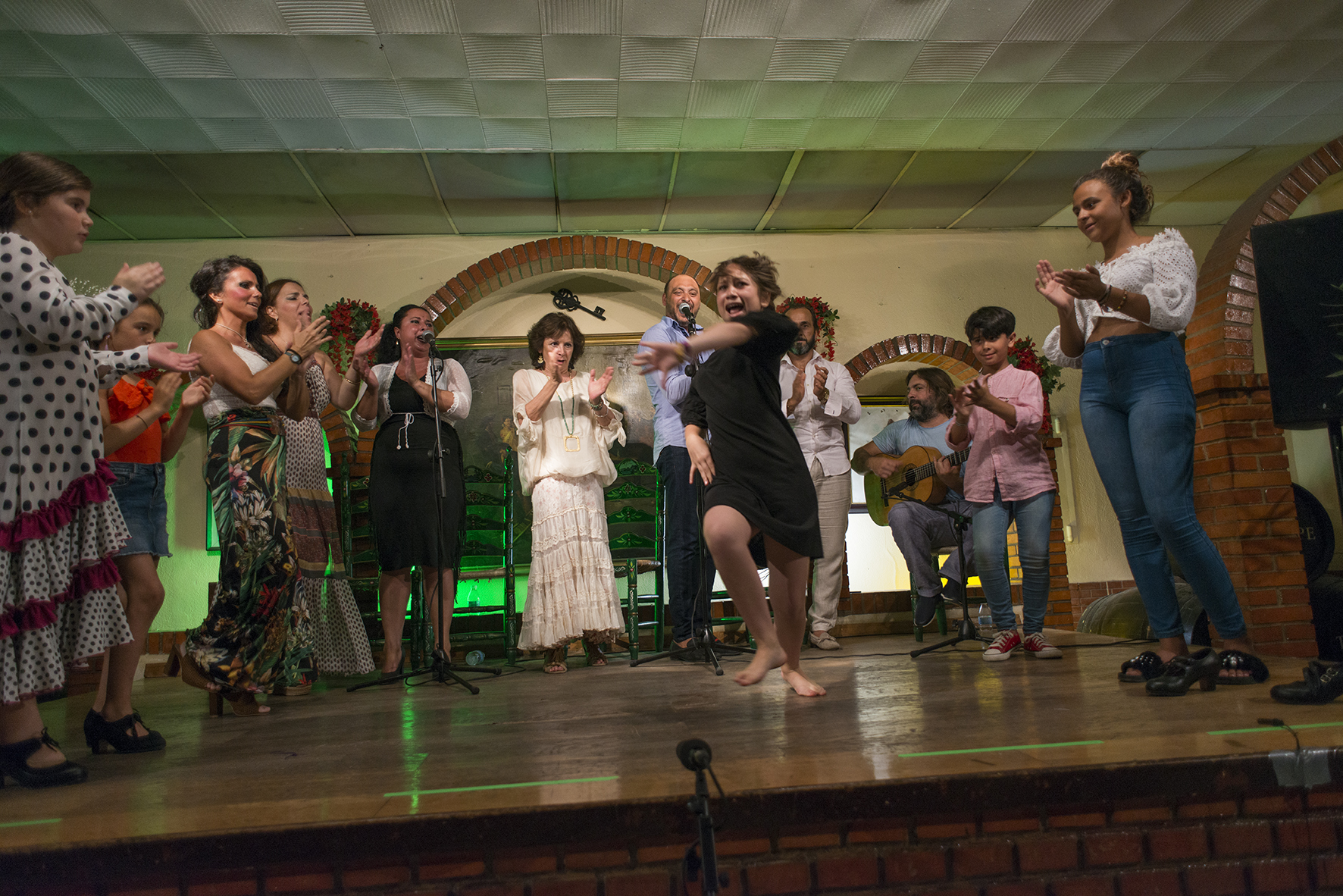 アナ・マリア・ロペスの教室の子ども達のコンパス感。群を抜いている。いろいろな場所で子どもが踊るフラメンコというのを見たことがあるのだけど、確かにその年齢でしっかり踊っていればすごいね!という話になるし、その子が小さければ小さいほど可愛い!という話になって、子どもが出てきただけで場は盛り上がる。でもその子どもの特権みたいのを取っ払ってみたとしても、彼らはフラメンコなのだ。そこがすごい。お遊戯でも学芸会でもないフラメンコ。本当に素晴らしかった。たくさんのフラメンコ公演を観てきたけど、これほどまでに熱いものはそうそうないと思う。