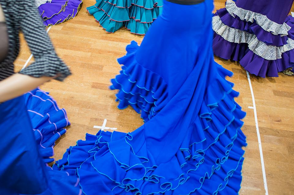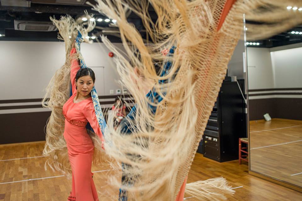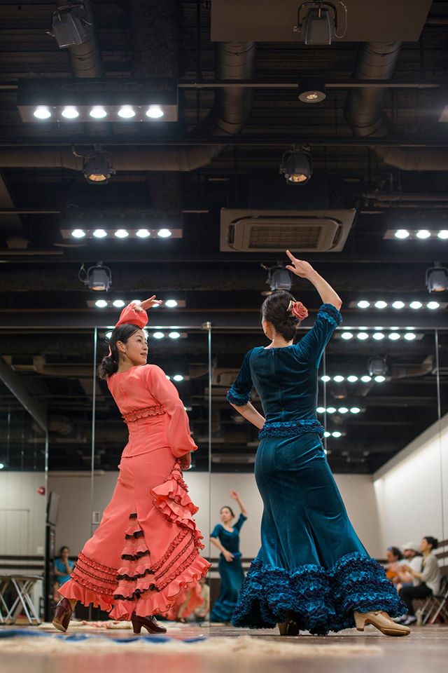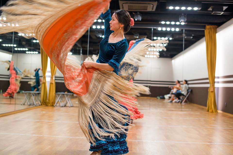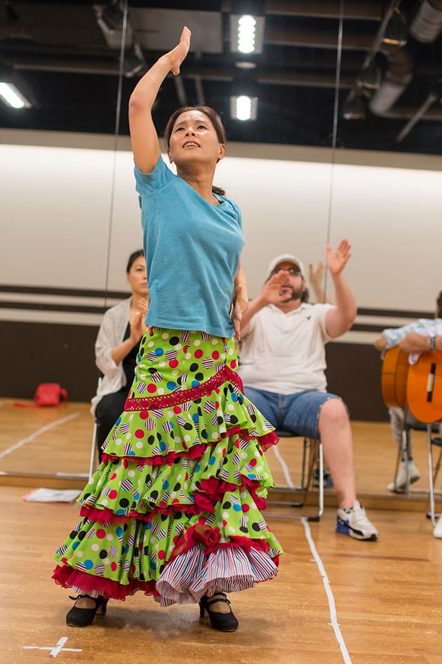 ライブで踊る曲というのはいろいろな決め方があるかと思います。踊り手が何人かいる場合は、事前に自分が何を踊りたいか出し、その中で事前に調整することが多いでしょうか。新人の踊り手さんで○○しか踊れません!という場合もあるし、大御所の踊り手さんで、「私は△△を踊ります」と宣言される方もいらっしゃるかも。(笑)でも一般的には2〜3曲希望を出してその中で曲がかぶらないようにして事前に決めることが多いかなあ。今回は1曲ソロを準備してほしいとのことでしたので、他の共演者の皆さんのご希望曲を事前に伺い、ソレアを踊ることにしました。