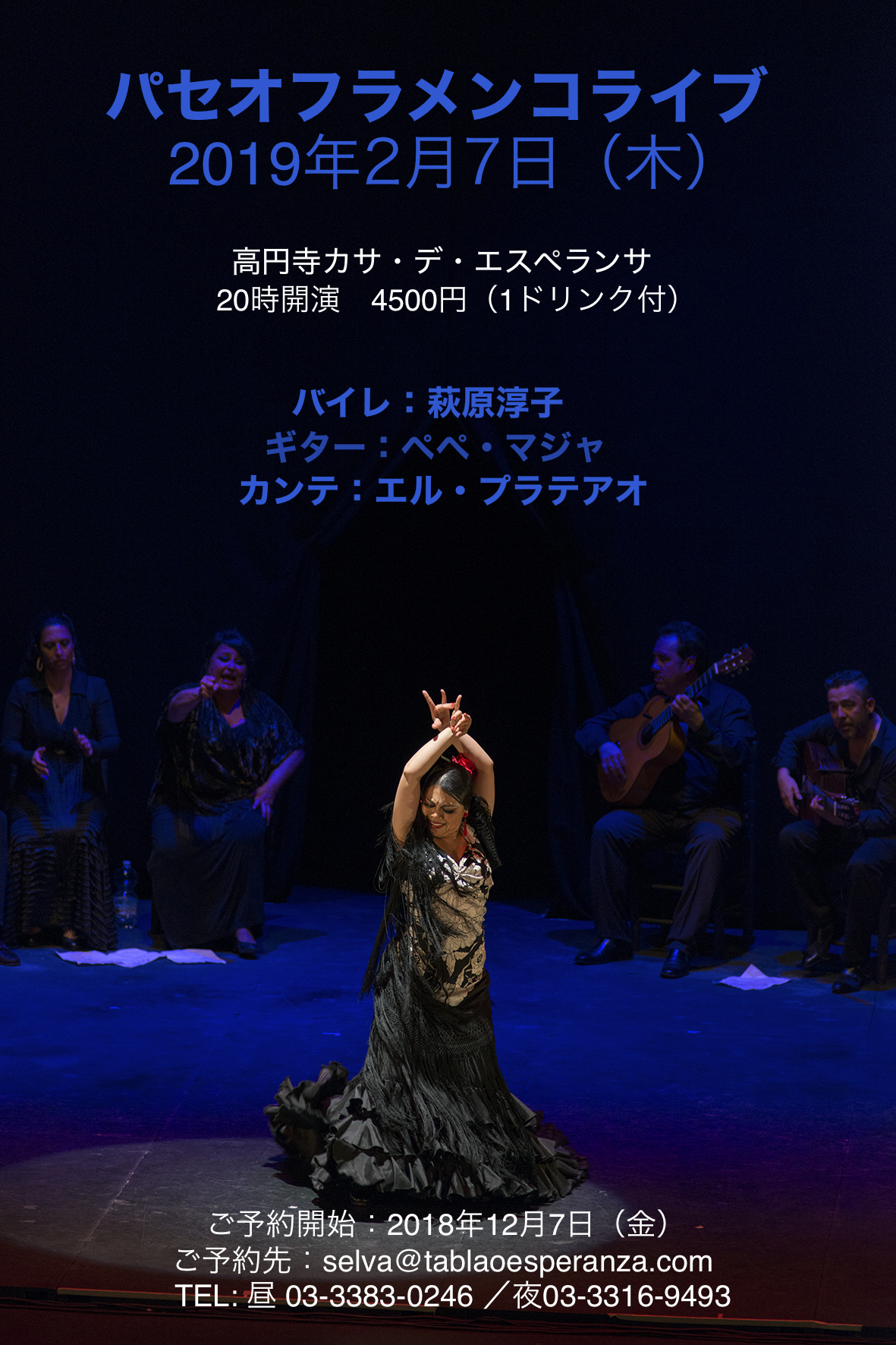 Junko Hagiwara ¨La Yunko¨ estará en Japón del 22 de enero al 18 de febrero del 2019. Va a actuar el día 24 de enero en ¨Sala Andaluza¨, Tokio y el día 7 de febrero en ¨Casa de esperanza, Tokio.